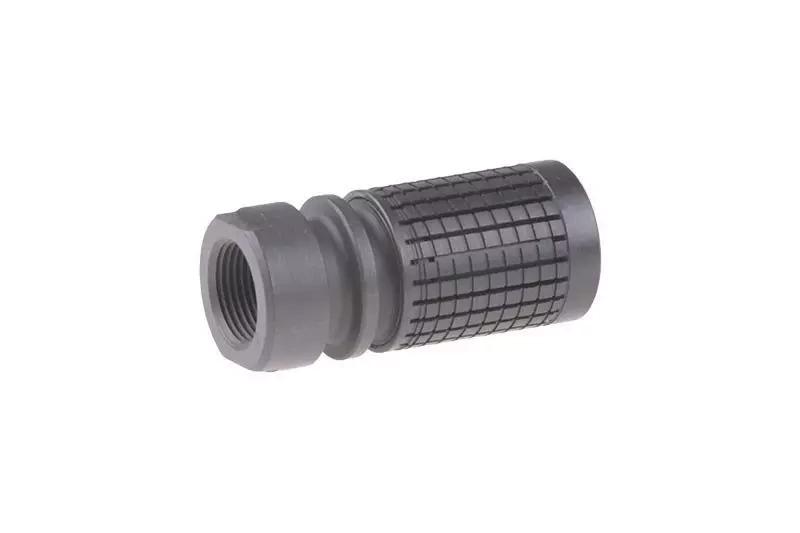 Wykonany ze stali tłumik płomienia typu PDW, pasuje na lufy z gwintem