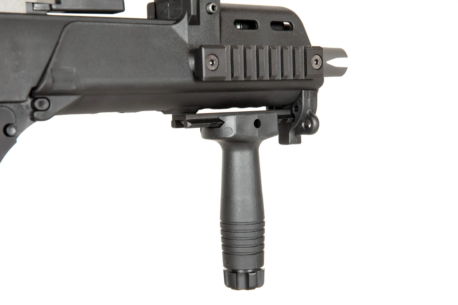 Replikę, tak jak w oryginale wykonano z bardzo wytrzymałego polimeru, metalu, oraz w najbardziej newralgicznych miejscach ze stali (stalowe są wiec wszystkie śruby, piny oraz uchwyt zawieszenia taktycznego). Replikę zaopatrzono w przednią szynę RIS 22mm (na górze, dole oraz po bokach).