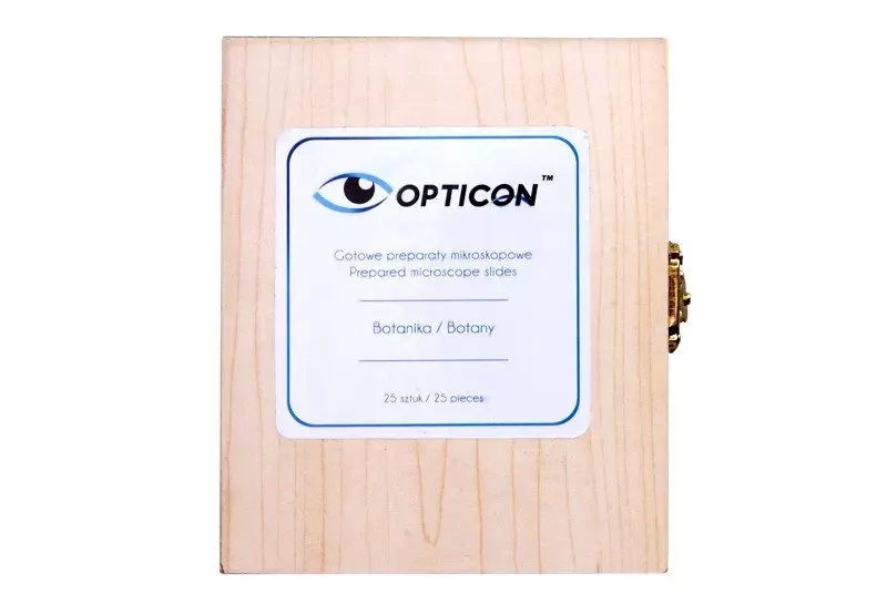 Zestaw preparatów biologicznych Botanika od firmy Opticon składa się z 25 wysokiej jakości preparatów, które zostały przygotowane przez profesjonalistów. Dzięki temu mogą posłużyć jako pomoc dydaktyczna i być wykorzystywane w szkołach, oraz na uczelniach. W wielu z nich zastosowano specjalne, kontrastowe odczynnik, które umożliwiły uzyskanie lepszej jakości obrazu.