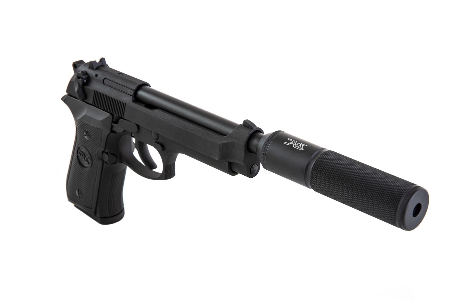 Replika pistoletu SR92 firmy SRC wykonana została prawie całości z metalu. Z metalu wykonano przede wszystkim zamek repliki. Metalowy jest także szkielet czy manipulatory repliki. Tak jak w palnym odpowiedniku z wytrzymałego polimeru wykonano okładziny chwyt pistoletowego z naniesionymi oznaczeniami producenta.